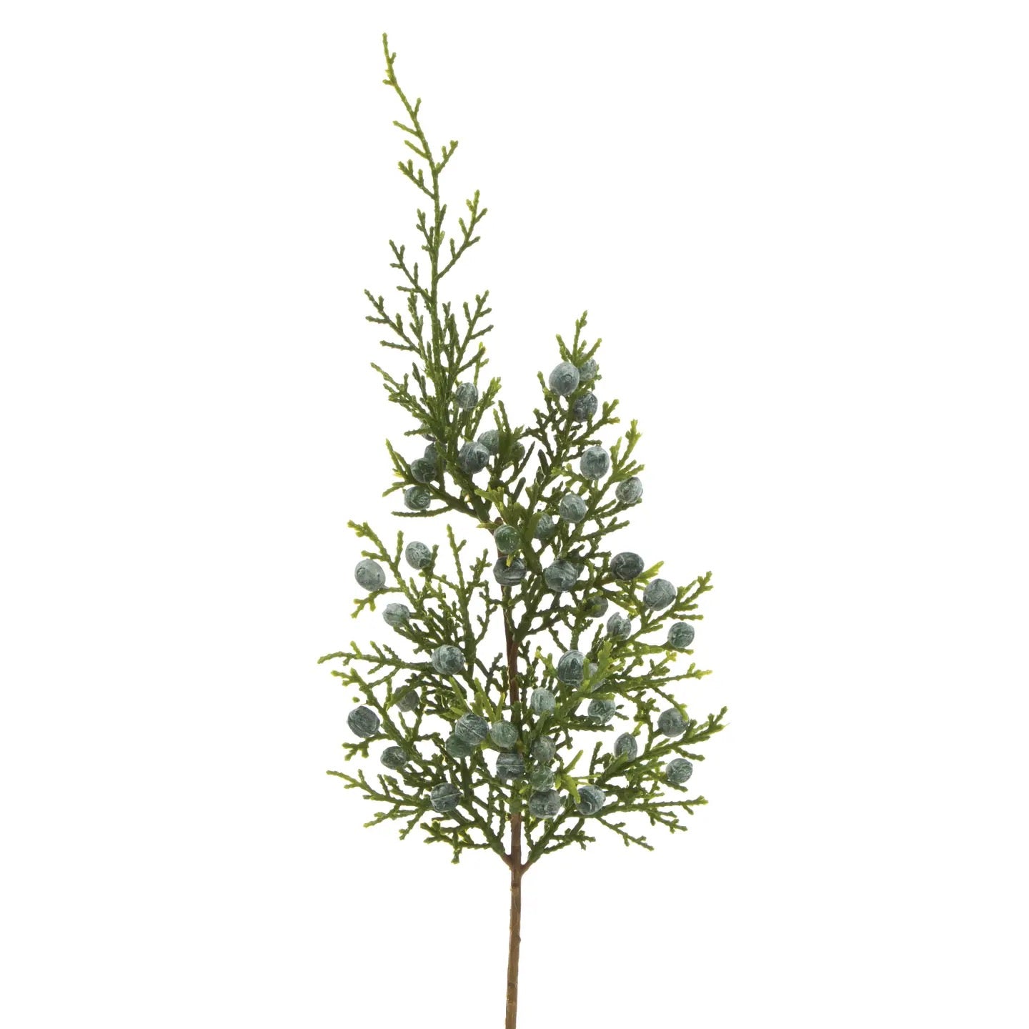 A compact, textured accent featuring lifelike green juniper foliage and clusters of faux blueberries. Perfect for adding a touch of evergreen charm to winter arrangements, holiday centerpieces, or gift baskets.