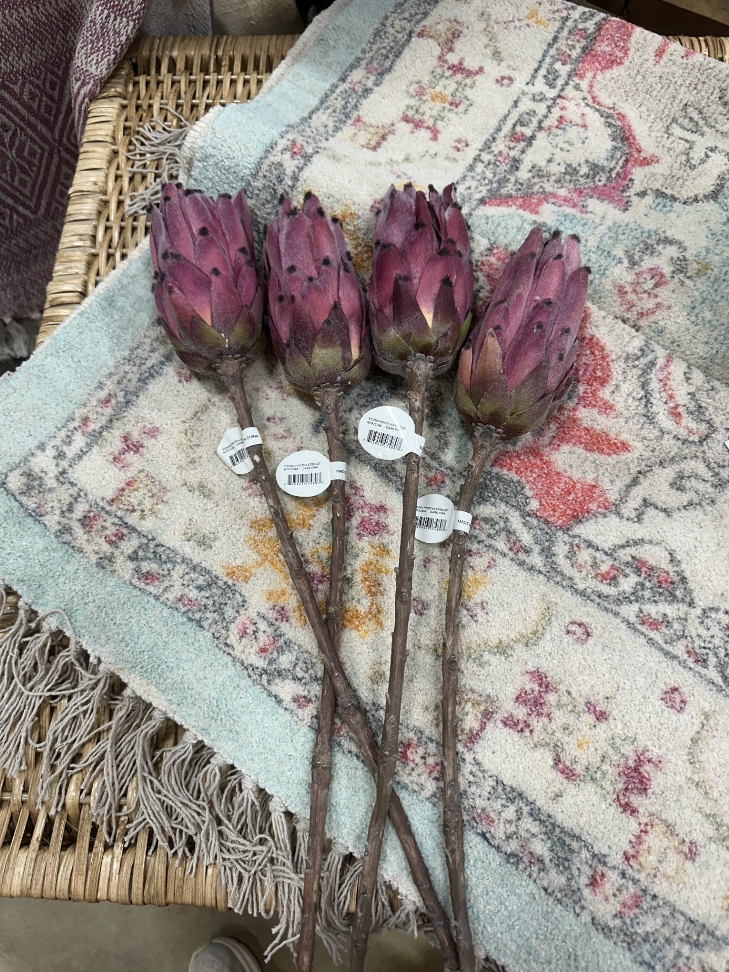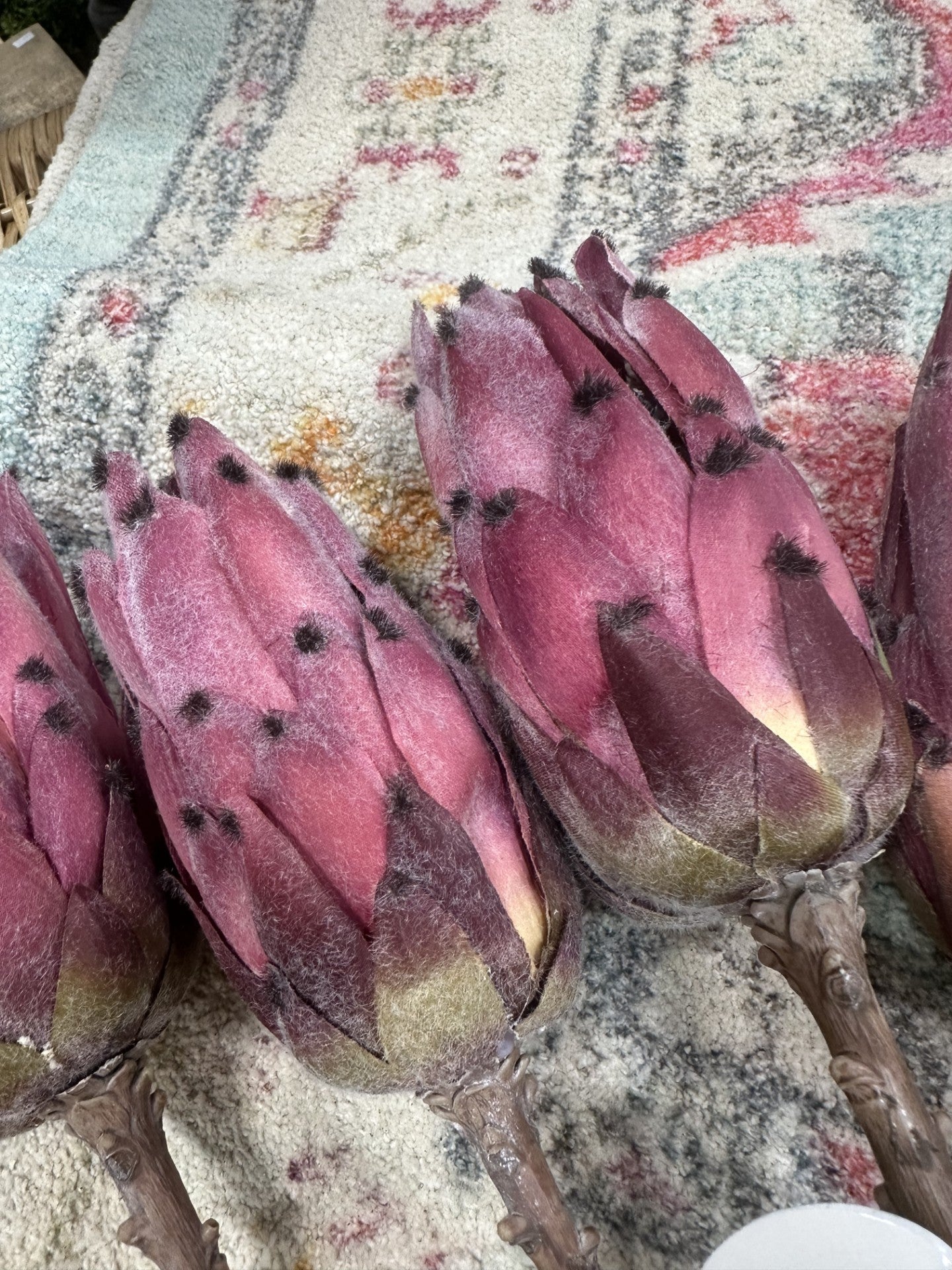 These young protea are so life like and feel so real to the touch! Perfect to mix in with lighter and different hues of pink! Add to greenery to really stand out!