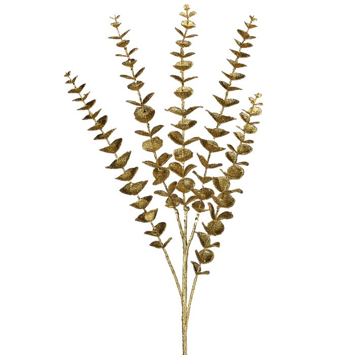 Add shimmer and style to your arrangements with this 33" Glitter Eucalyptus Stem. Its sparkling finish and elegant design make it a perfect accent for holiday centerpieces.