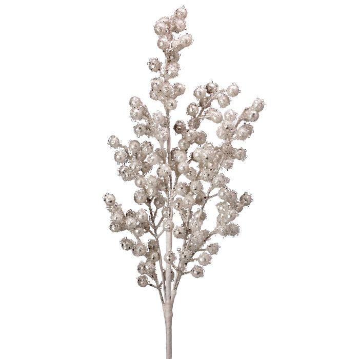 27" Beaded Iced Berry Spray featuring frosted beads and shimmering details, perfect for adding a wintry sparkle to holiday arrangements, centerpieces, and seasonal décor.