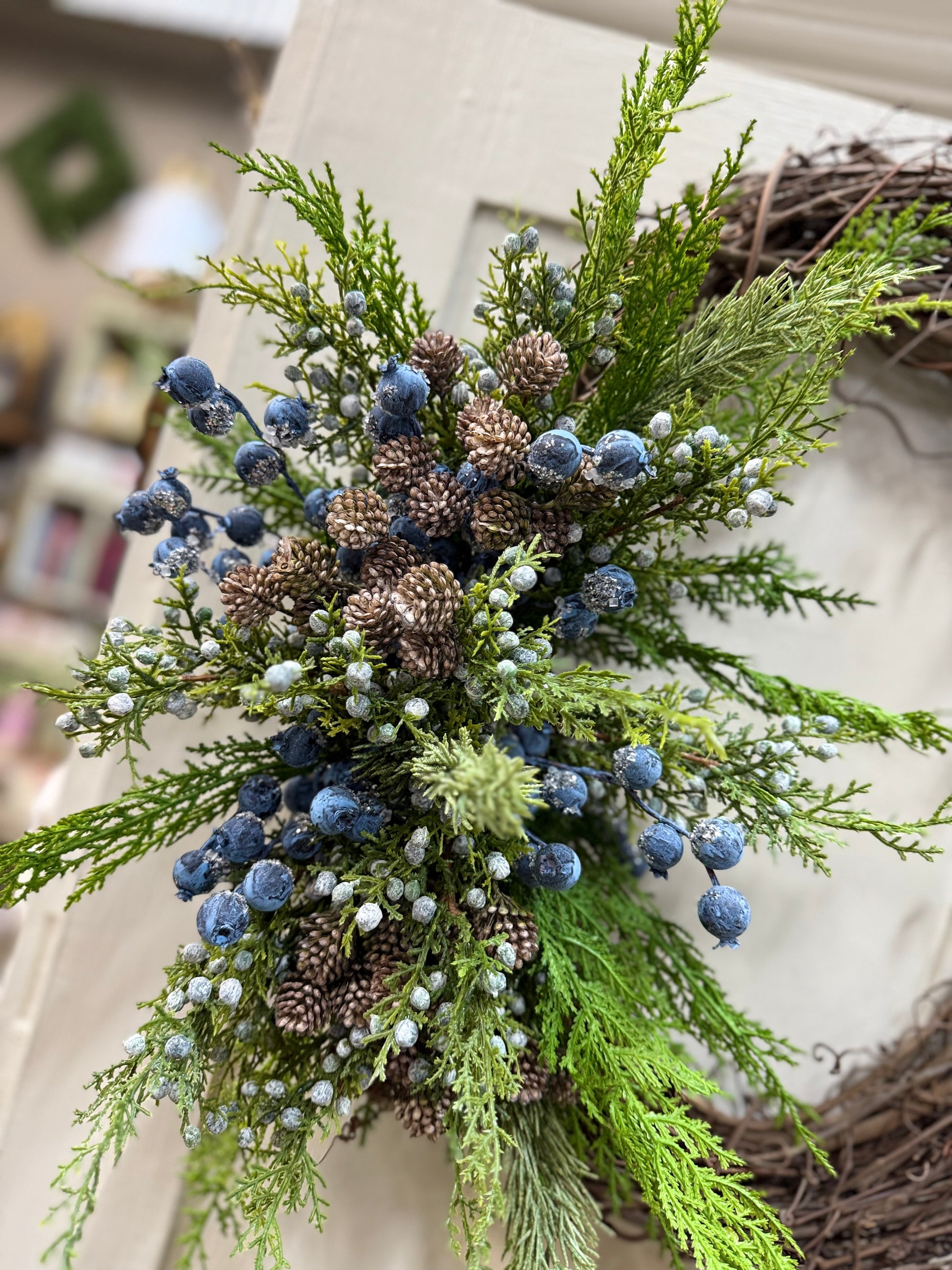 Cedar/Pinecone/Berry Blue Vine Wreath