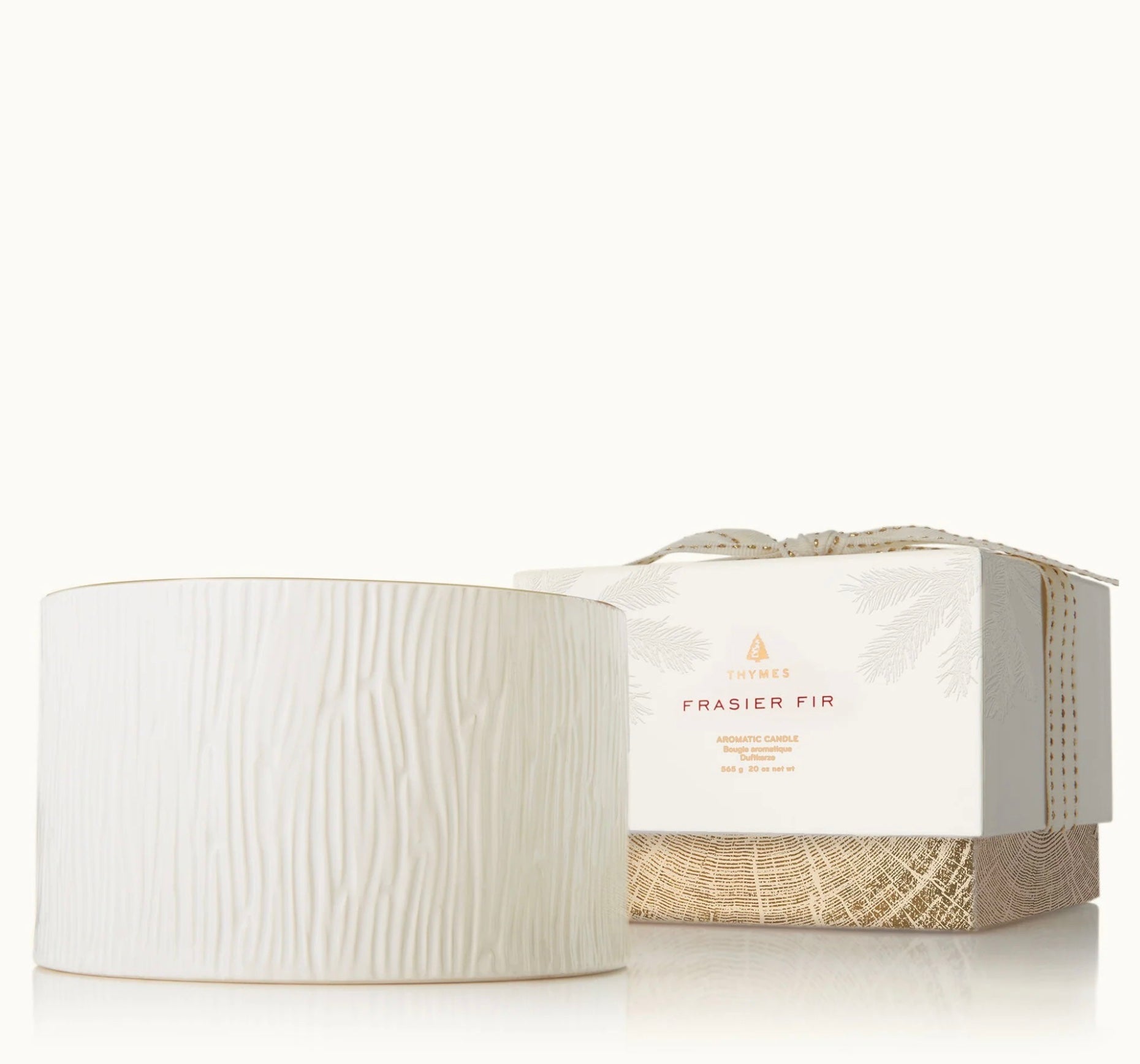 Bring the fresh, crisp fragrance of Frasier Fir—Siberian fir needles, cedarwood, and sandalwood—into your home with this elegant 3-wick candle. Housed in a timeless ceramic vessel, it creates a warm, radiant glow and fills your space with long-lasting holiday ambiance.