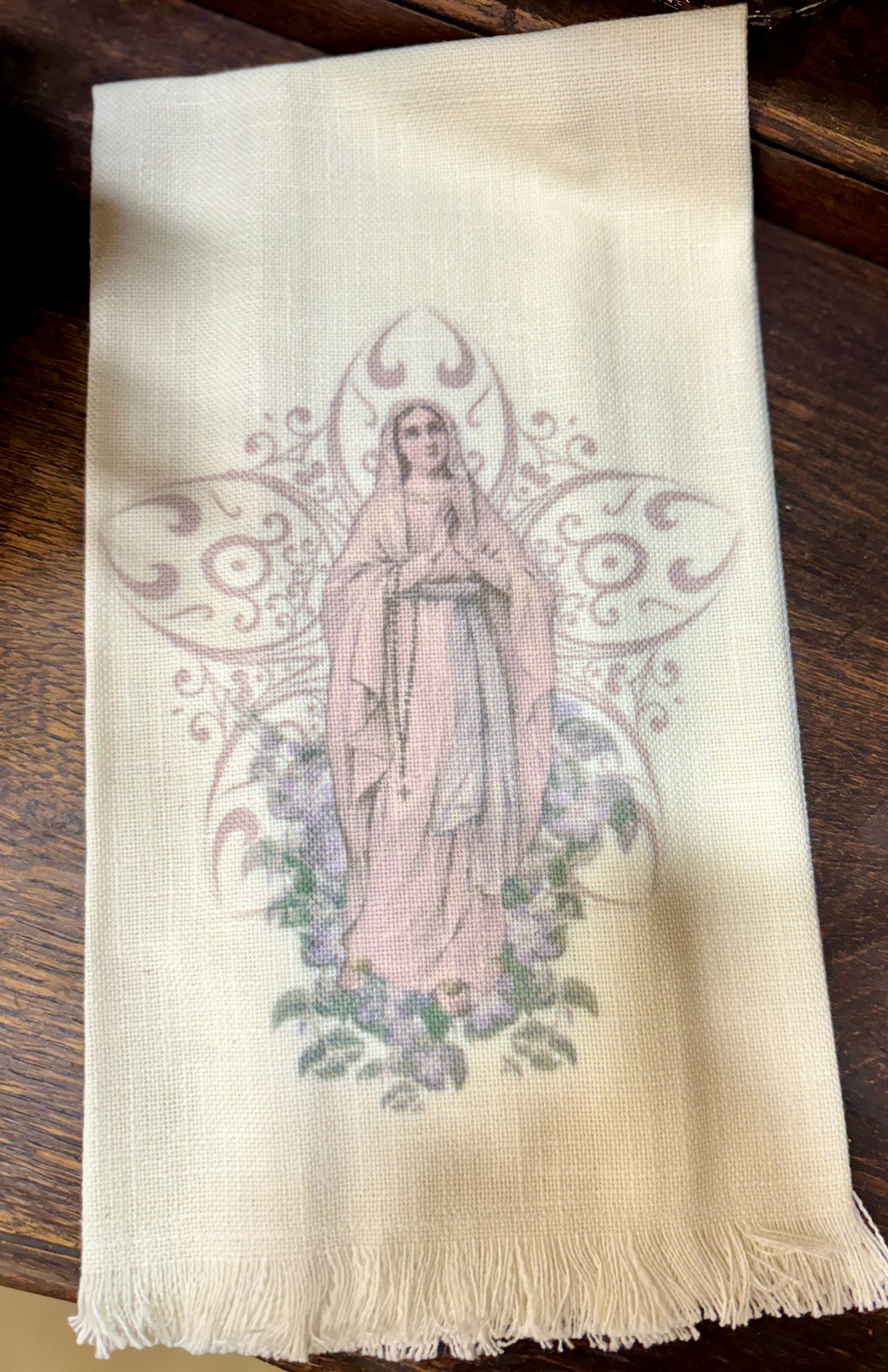 These Holy Mary tea towels have been a best seller for us! They are truly stunning.