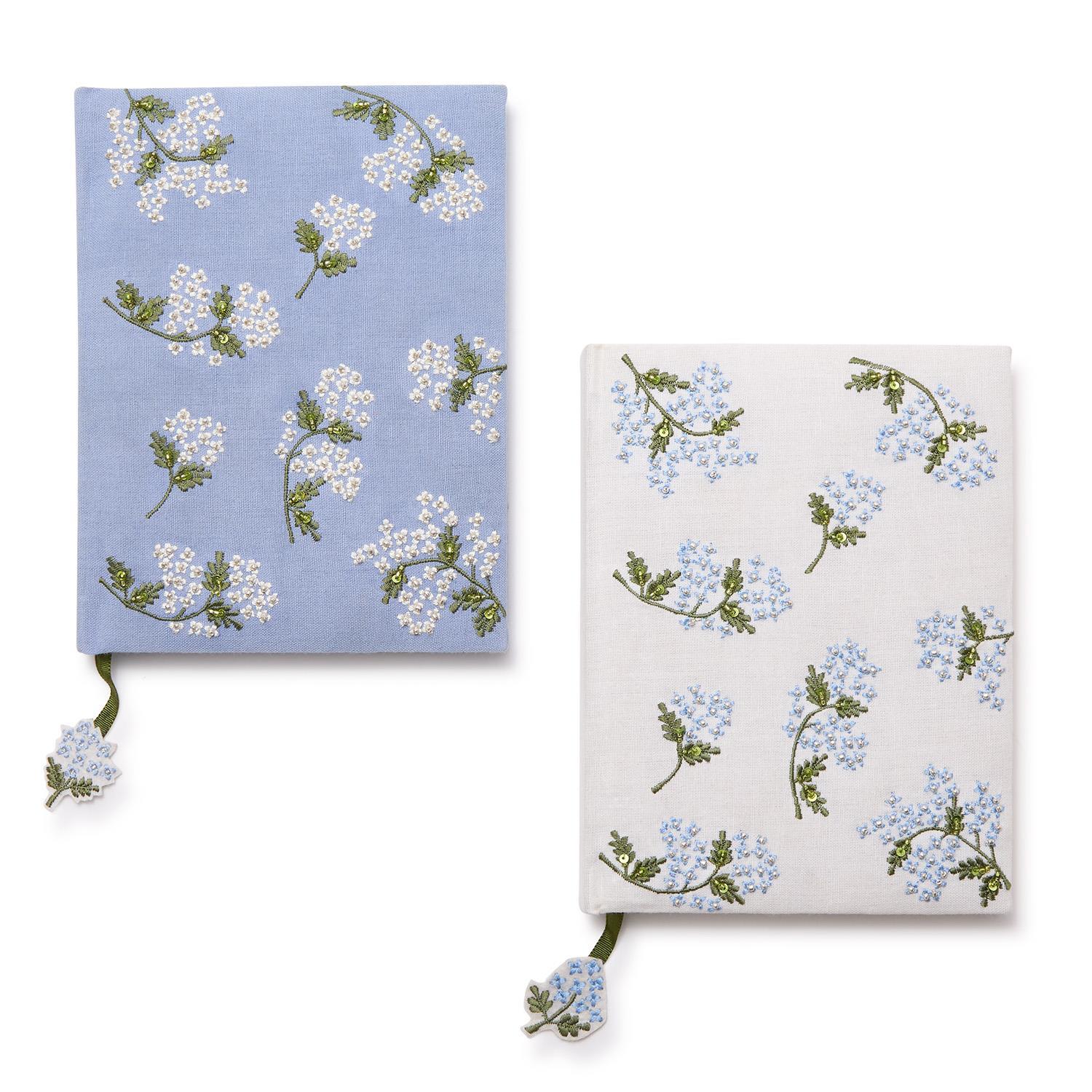 Hydrangea Embroidered and Embellished Linen Fabric Journal Assorted 2 Color: White and Blue