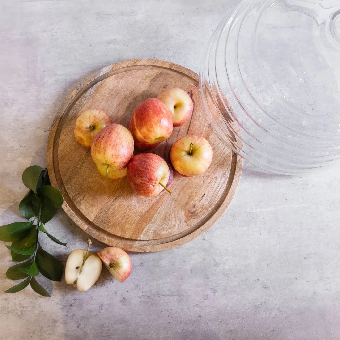 Mango Wood & Glass Round Hive Food Dome/Plate