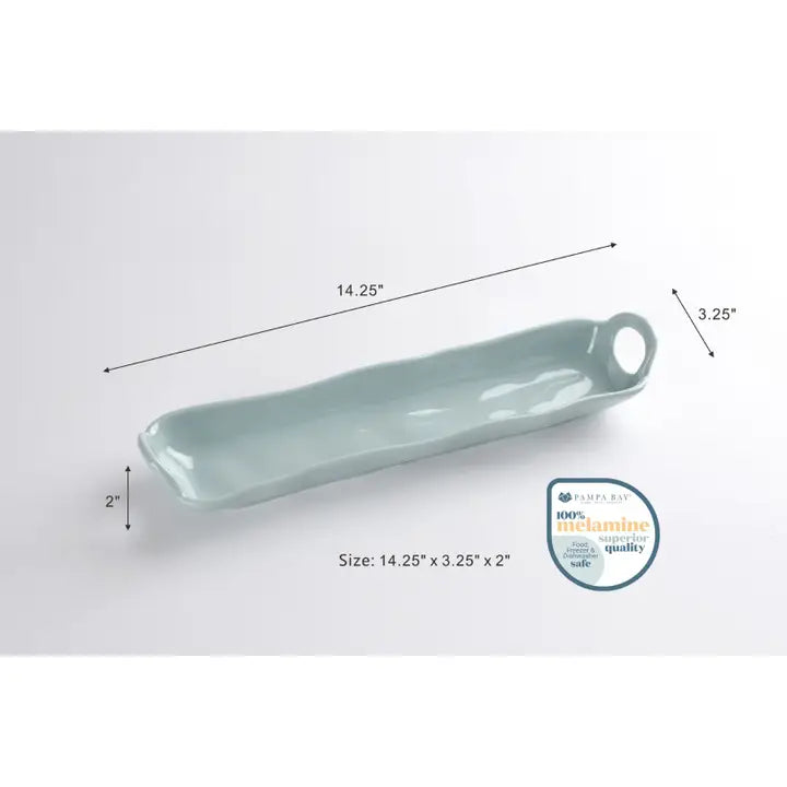 Cracker Tray from our Aqua Collection. Perfect for crackers, small cookies and other small treats. Stunning, blue-toned superior quality melamine. Great for your indoor and outdoor activities Food safe, freezer safe, dishwasher safe, Easy Care.