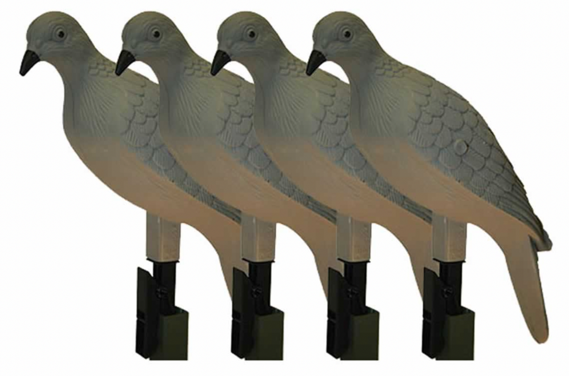 Realistic, hard body molded plastic clip-on dove decoys that, unlike others on the market, are fitted with MOJO’s patented breast peg mounting system that also comes with a clothespin adaptor allowing the mounting on just about any support, including limbs, wires, branches or support poles. Adds true realism, Mojo clip-on dove decoys work well with the popular MOJO motorized decoy. Includes 4 per package.