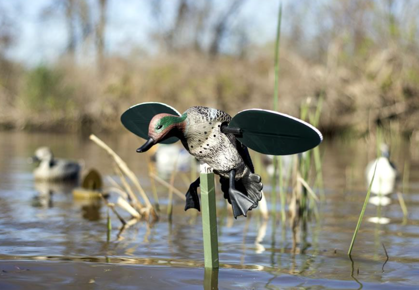 MOJO® introduces the TOTALLY NEW MOJO Teal decoy with SUPER FAST WINGS – a whole new concept in duck hunting! Experience has shown that mallards, gadwall, teal, pintails, divers, and all other ducks are much more attracted to the faster strobe effect of a spinning wing decoy.