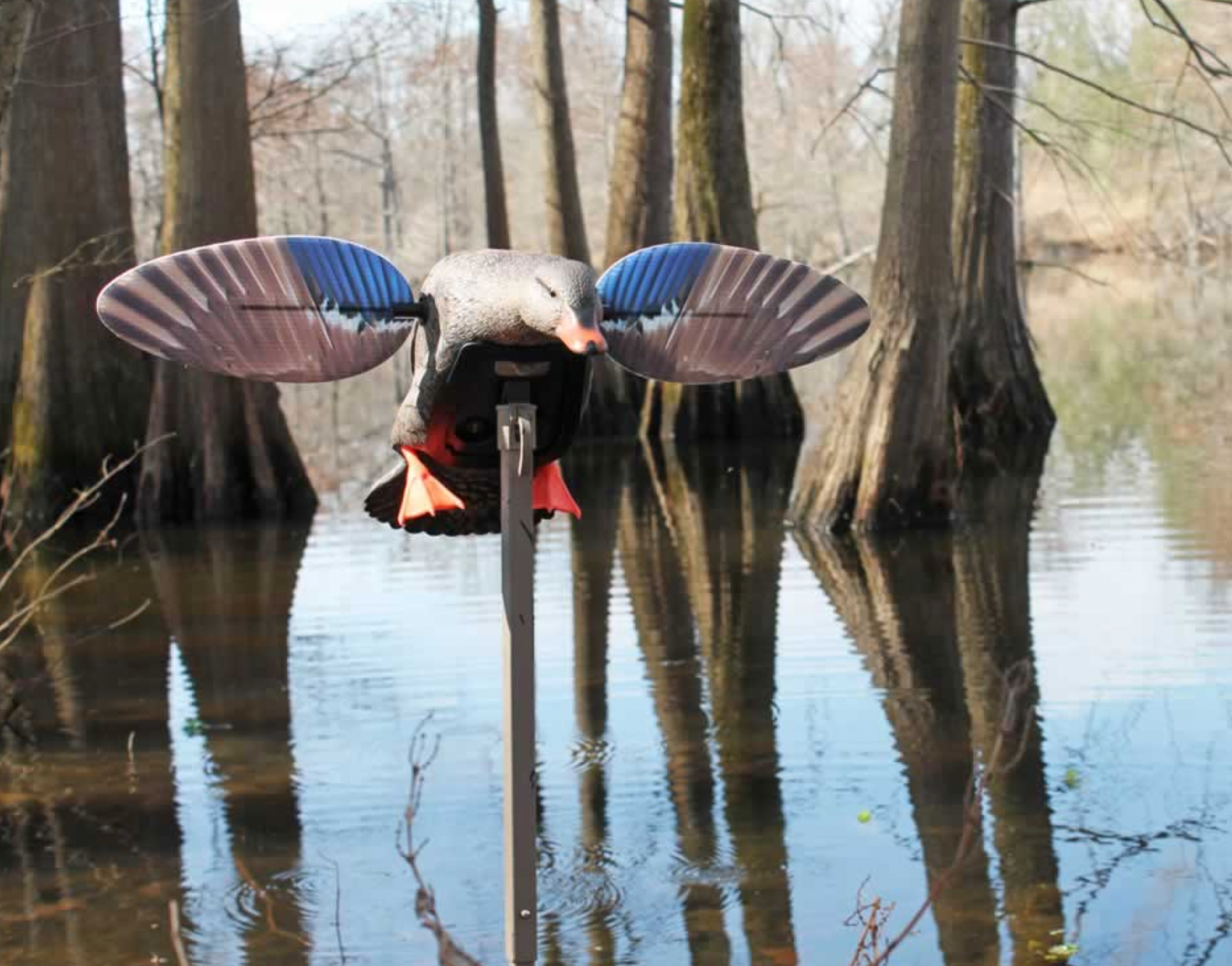 MOJO® Outdoors introduced the greatest advancement in motion decoys since the advent of the spinning wing decoy (SWD) with the all-new, patented KING MALLARD, part of our MOJO Mallard® Elite Series™. Until now, all SWD’s have been designed and manufactured by attaching the motor, battery and other components to the inside of a hollow rigid body which resulted in significant vibration, wobble and noise. Think of how your truck or ATV would operate if the motor and transmission were attached to the body instead of the frame.