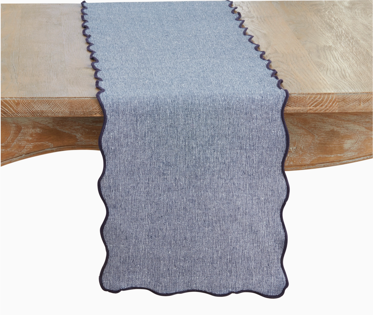 The Recycled Scallop Border Table Runner is designed to complement any setting with style. A great accent for your everyday or seasonal table.