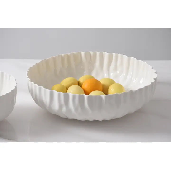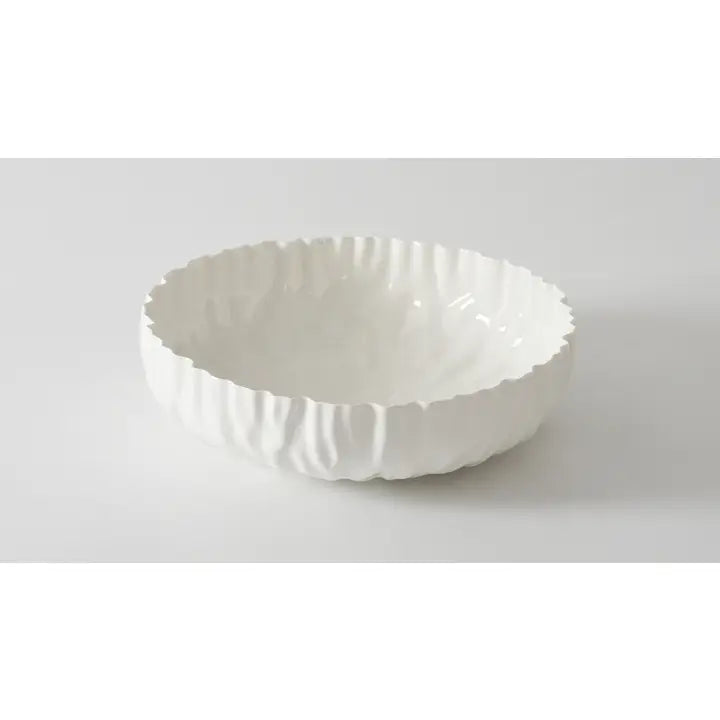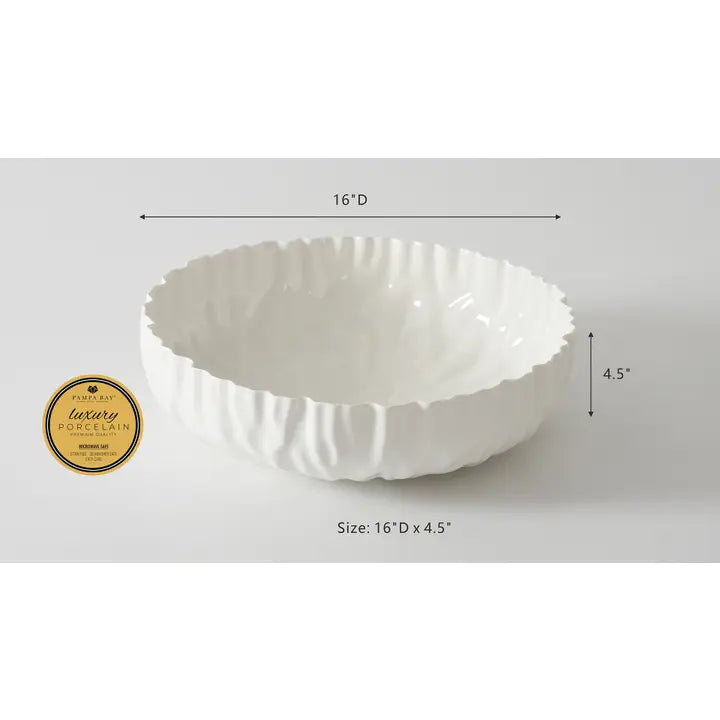 Extra Large Shallow Bowl from our Mascali Bianca Collection. A simple and elegant serving piece for crowd pleasing dishes like paella, chicken piccata and fettuccini alfredo. A perfect countertop piece to display fresh fruits or vegetables! Versatile high-fired porcelain pieces that are microwave safe! Food safe, tarnish free, dishwasher safe, oven safe to 500°. Easy Care.