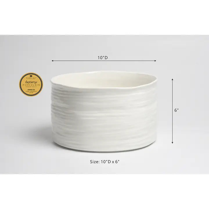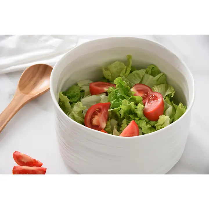 Large Bowl from our Le Blanc Collection. Generously sized bowl for serving salads or side dishes like mashed potatoes, roasted vegetables, or rice! Beautifully crafted with clean lines and organic shapes. Food safe, tarnish free, dishwasher safe, oven safe to 500°. Easy Care.